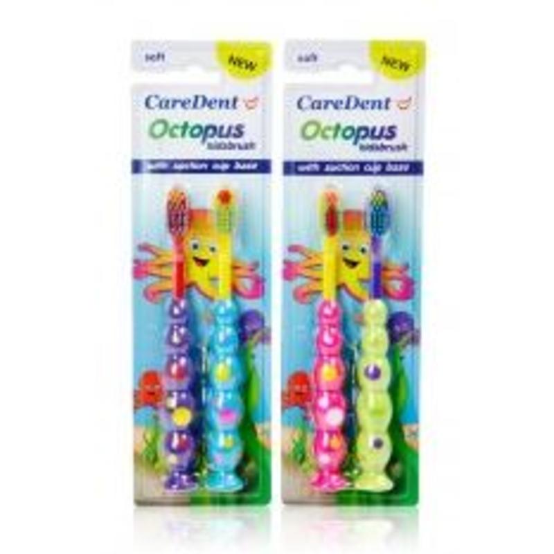 CareDent 章鱼牙刷专门为儿童而设计,根据儿童手掌大小发育规律,设计刷柄的长度,让宝宝更易掌控。使用防滑加强设计,让宝宝自然掌握刷牙的正确姿势。针对宝宝稚嫩的牙龈,特意配上特柔软的刷毛帮助清洁小牙齿和牙龈保护,是一支既可以有效地清洁宝宝牙齿,又可以有效地保护宝宝的牙龈不受伤害的软毛刷。配上色彩鲜艳的章鱼图案,帮助儿童建立良好的刷牙习惯,让宝宝更喜欢刷牙。