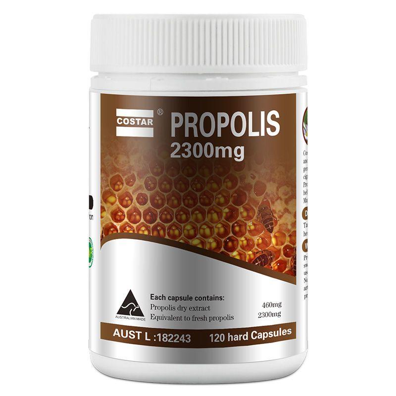 Costar 2300mg 纯天然蜂胶软胶囊 (排毒养颜、提高免疫力、调节血脂)采用澳洲原装黑蜂胶,是提高免疫最佳天然产品;针对三高有极好辅助作用。其生产工艺一流,选料天然,标准最高,监管最严。纯天然黑蜂胶中含有丰富而独特的类黄酮(植物染色体),具有优异的抗菌性、抗氧化、消除体内自由基,促进血液循环、解热、镇痛、安神、提高生物体的防御等作用;还可以杀菌,适合一切的发炎症及过敏症。