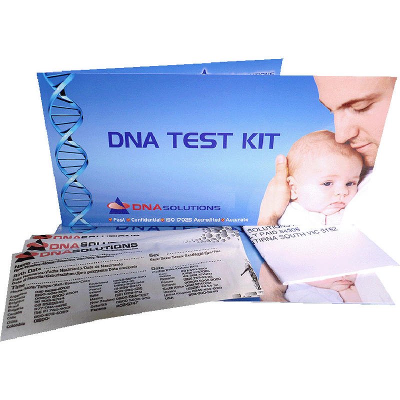 DNA PATERNITY TEST KITHave your DNA tested for paternity by only taking a painless cheek swab from each person then mailing the swabs with your completed order form to one of Australia’s most trusted DNA testing laboratories. Australian owned and located laboratory, which is ISO 17025 and NATA (National Association of Testing Authorities) accredited and has been performing DNA testing for 15 years.CONTENTS OF THE KIT- 3 cheek swabs- Accuracy Guarantee- Order form- Instructions- Reply paid envelope- DNA and DNA Solutions company informationWHAT IS INCLUDEDAn additional payment of $230 is required on top of the kit price of $49 to cover all the testing fees for a Premium Paternity test, which includes testing the DNA (18 loci) in the father and child (mother optional at no extra cost), analysing the DNA then processing and supplying results.BASIC PROCEDUREInside the kit you have three mouth swabs, for three persons. A simple order form in included as well as easy to follow instructions on taking a cheek swab.Note: You can supply other sample types such a used toothbrush for discreet testing.PROCESSING THE SAMPLESAfter you have used the kit to take your samples use the included reply paid envelope to post your samples to the laboratory for processing. Results will come to you within 8 working days (express options are available).GUARANTEEDNA Solutions guarantees the highest accuracy of any laboratory for its DNA test testing 18 regions of DNA in each person (at least 2 regions more than other laboratories).