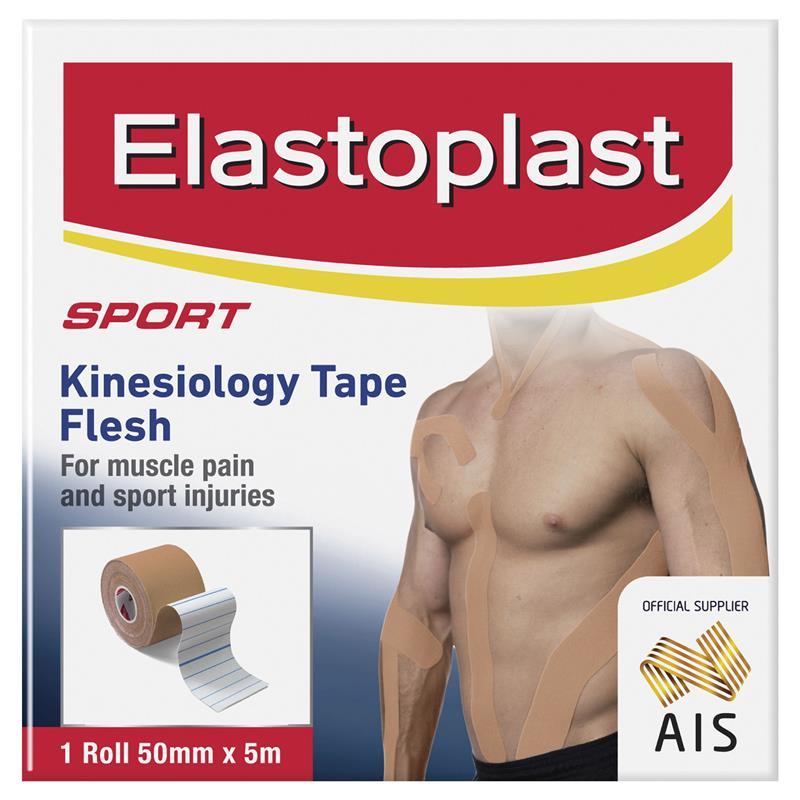 Elastoplast Sport Kinesiology Tape?for muscle pain and sport injuries. For muscle pain and sport injuries. Water resistant. Breathable. Helps to: Treat muscle pain. Prevent fatigue. Increase blood flow. Prevent cramps.