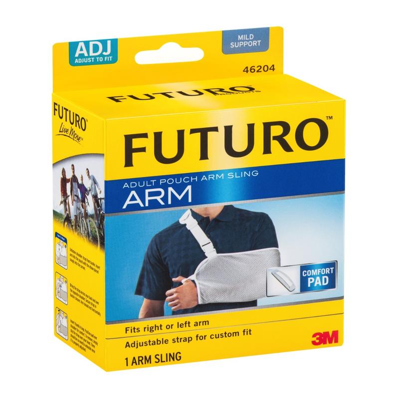 The Futuro Adult Pouch Arm Sling provides comfortable support for either arm during recuperation from a broken bone, sprain, surgery, or for general arm support. Helps support the weight of the arm. Adjustable strap for custom fit. Comfort pad cushions shoulder bone and muscles. Lightweight, breathable materials. For right or left arm, this arm sling has been designed with an adjustable strap in order to create a customised fit for most body types. Adustable strap for custom fit.