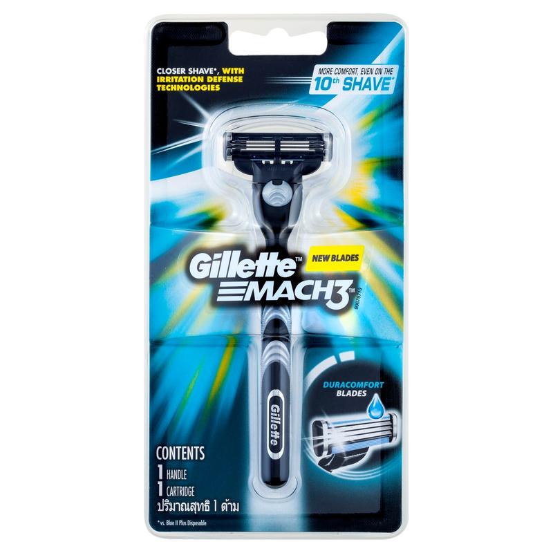 Gillette Mach3 Razor gives a closer shave with more comfort. The Mach3 is better than a new disposable even on the 10th shave Gillette Mach3 men’s razor delivers a close shave, without all the redness. Mach3 razor features 3 DuraComfort blades for long-lasting comfort. A gel strip glides to help protect your skin from redness, while an Advanced Skin Guard helps stretch your skin in order to prepare your hair to be cut. This Mach3 razor can be used with any Mach3 cartridges. Closer shave, without all the irritation 3 DuraComfort blades for long-lasting comfort Gel strip glides help protect your skin from redness Advanced skin guard helps stretch your skin, helping prepare your hair to be cut Better than a new disposable even on the 10th shave Fits all Gillette Mach3 blade refills 1 Handle, 1 Cartridge