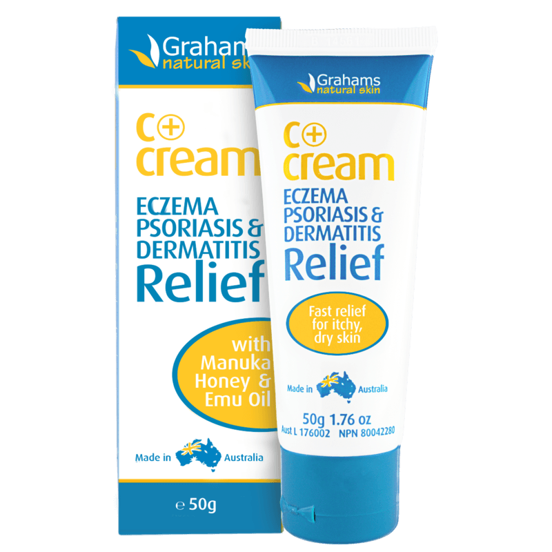 Grahams Natural C+ Plus Eczema & Psoriasis Cream is formulated with all natural ingredients enriched with manuka honey, calendula, propolis, emu oil & centella asiatica. These ingredients soothe and calm inflammation, while also replenishing the skins pores. Especially developed for those with sensitive skin, effective for relief of eczema, psoriasis & dermatitis.