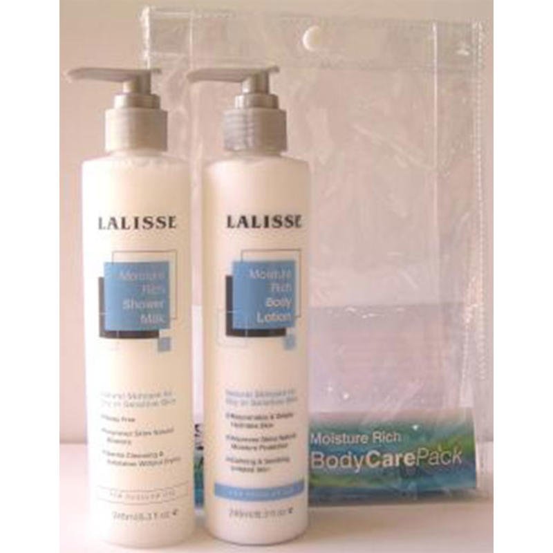 Designed for Dry and Sensitive Skin the Lalisse Moisture Rich Body collection assists the repair and prevention of dermatological skin conditions. It is your answer to a healthy and vibrant complexion! Lalisse Moisture Rich Shower Milk 245ml Cleanse your body without dryness or irritation – Creamy rich soap free foam gently cleanses the skin – Combines Olive Oil and Sunflower Seed extracts for optimum hydration – Chamomile & & Poria Cocos extracts calm and soothe itchy skin – Natural exfoliation properties of Kiwi fruit removes dead skin cells Lalisse Moisture Rich Body Lotion 245ml Hydrate, smooth and restore your natural glow – Silky Shea Butter & Evening Primrose Oil formula soothes and protects dry, sensitive skin – Ginseng Root, Poria Cocos and Chamomile extracts relieve dermatological skin conditions – Algae extract increases the skins moisture absorption – Promotes skin rejuvenation and moisture protection for healthy and vibrant skin ?