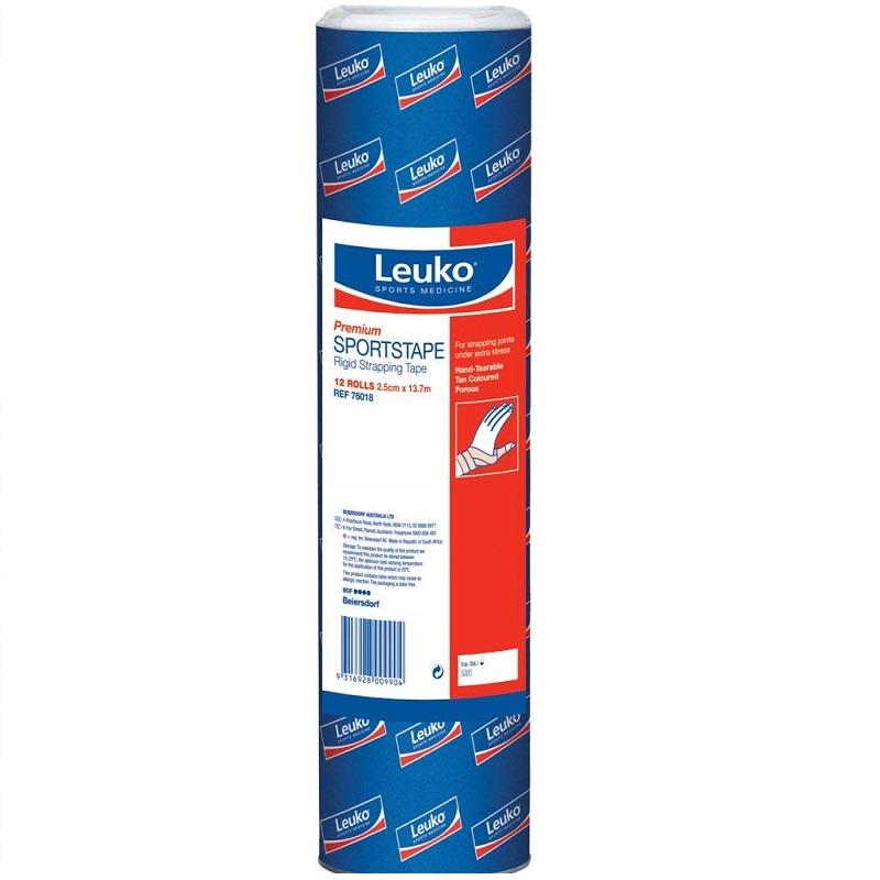 Leuko Premium Sportstape Rigid Strapping Tape Tan Roll Used to support joints under high stress during aggressive sports activities. Strong, rigid construction provides excellent support. Prevents excessive joint movement that causes injury (ankle ligament sprain), when taped correctly. Comes in a range of widths and lengths to cater for all facets of prophylactic (preventative) taping.