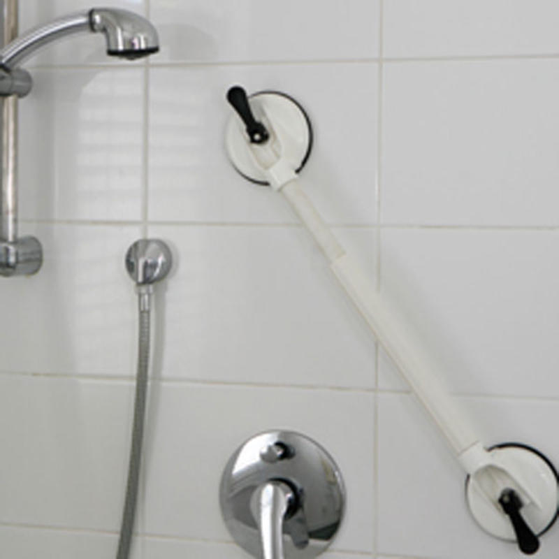 * Portable suction hand rail for home and travelling * Easy to attach and remove * Extendable with pivoting end * Suitable for smooth, flat, non-porous surfaces; e.g. glass, tiles * Suitable for wet areas; e.g. shower * Suitable for use on the inside windscreen for added stability when entering or exiting a car * No home modification required for mountingImportant Note: Suction Hand Rails will not adhere to shower walls with tiles smaller than the suction cap diameter. This product is not suitable on painted plaster walls, brick walls, or porous surfaces. Please remove protective plastic covers from suction cups before use. Recommended that Hand Rail Suction be removed and re-attached every few weeksSpecificationsTotal unit weight 0.5kg / 1.1lbsOverall length 530 – 630mm / 20.8in – 24.8inHand grip width 270mm / 10.6inSuction cup diameter 115mm / 4.5inLoading capacity 60kg / 132lbsWarranty 12 months