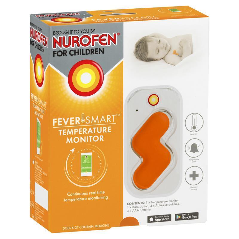 Nurofen 儿童宝宝蓝牙智能体温检测仪包括1个检测仪、1个充电盒、4个测温贴和3节3A电池。这款产品的设计理念以实用为主,减少夜间照顾发烧孩子的父母,减轻他们的精神和体力负担,并且测量体温时不影响孩子休息。测温贴采用美国进口3M婴儿硅胶,环保,透气不过敏,柔软,可配套手机智能APP使用,日常使用只需将测温贴牢牢紧贴宝宝的腋窝,打开蓝牙配置,就能全程记录发热病程,让测温数据连续、清晰、准确地传达到手机APP上。还能实现高低温报警功能、数据存储、导出和分析功能等,以便于父母24小时通过手机来不断监测孩子体温的变化。
