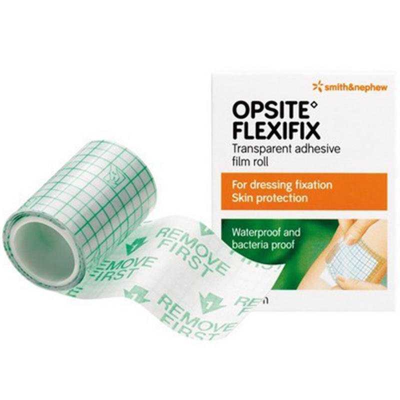 Description OpSite Flexifix is a roll of transparent adhesive film, ideal for use in dressing fixation, tube fixation, dressing reinforcement and the treatment of painful peripheral neuropathy. It combines all the advantages of OpSite film with a unique application system, to allow easy and secure fixation of all kinds of dressings. OpSite’s strong, flexible film also offers protection against skin breakdown due to friction and moisture. Benefits OpSite Film The film is waterproof and a barrier to bacteria. Its high moisture vapour permeability allows the skin to breathe. The acrylic adhesive minimises the risk of skin damage on removal, especially after long periods of wear.Adaptable to awkward areasOpSite Flexifix has been designed to allow easy application of the film to awkward areas of the body and over dressings and tubes. The film is highly conformable and extensible to increase patient comfort.Unique Roll SystemThe unique and novel roll format enables rapid and economical use of the OpSite film to create comfortable, waterproof fixation for dressings.Indications It can be used for :*Retention of primary dressings eg, Melolin Non-adherent Dressings or *Allevyn Hydrocellular Hydrophillic Polyurethane Wound Dressing*Fixation of tubing*Treatment of painful peripheral neuropathy*Skin protection under leg bags, stoma devices*Reduction of shearing forces on unbroken skin, e.g. in pressure sore prophylaxis