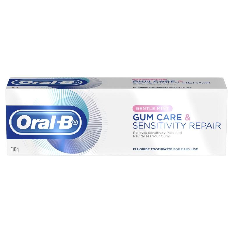 Oral-B Gum Care & Sensitivity Repair. Gentle Mint toothpaste relieves sensitivity pain and revitalises your gums. It promotes healthy gums by fighting plaque bacteria along the gumline and slowing its re-growth. Forming a therapeutic layer around the tooth to repair painful sensitivity. Prevents future causes of sensitivity. Gentle mint flavour
