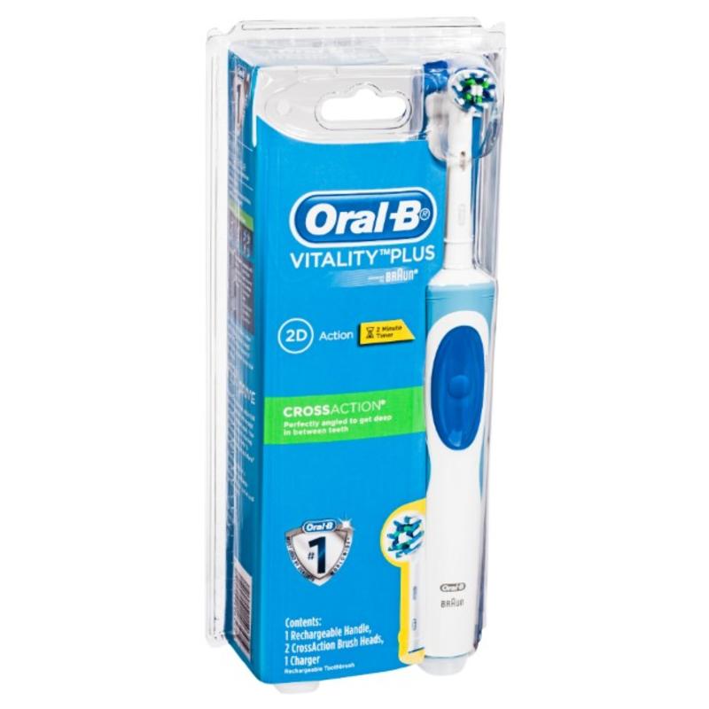Oral-B 欧乐B 多动向交叉刷头电动牙刷套装包含一个充电式电动牙刷柄、一节电池、牙刷头两个。是一款电池型电动牙刷,多动向清洁,真正洁净。德国进口多动向刷头,双头清洁双管齐下,多角度清除牙菌斑。小巧杯型刷头,灵活深入,有效清洁口腔内部。独特刷毛设计,真正全方位清洁每颗牙齿。多动向交叉毛,有效触及并刷掉齿间难清除的牙菌斑。