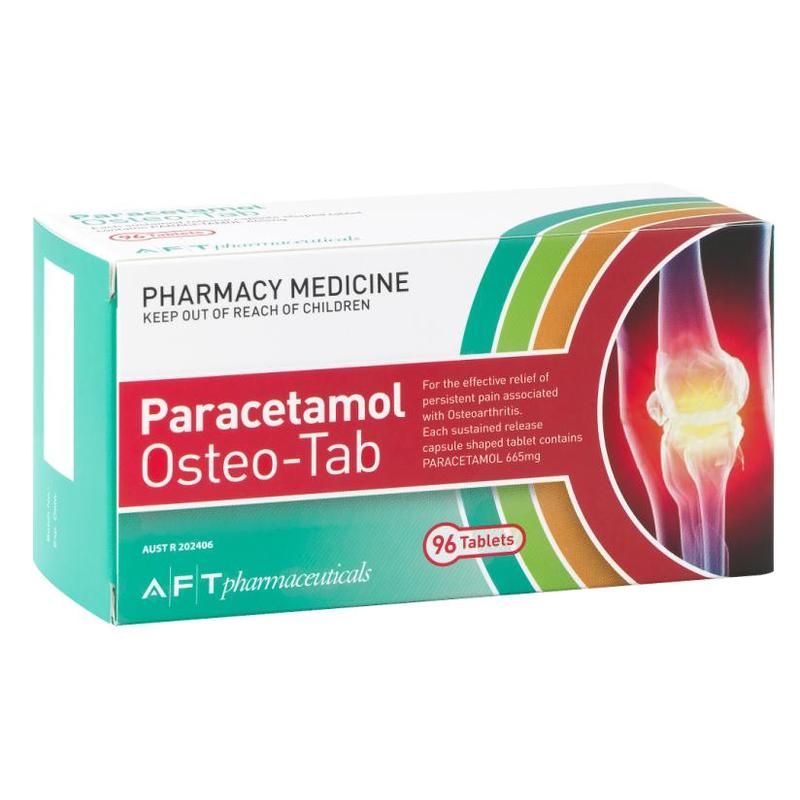 Paracetamol Osteo-Tab Tab X 96Indication: Relief of persistent pain associated with Osteoarthritis.Features: Sustained release capsule shaped tablet.