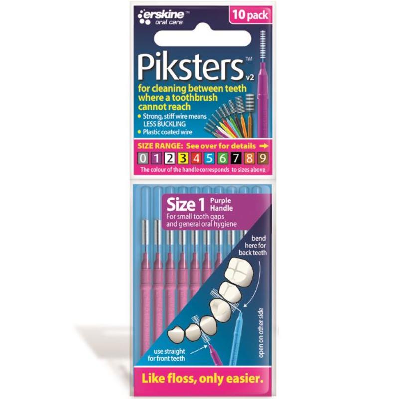 Piksters 紫色装1号尺寸牙缝清洁刷 10支(深层清洁保护牙齿/矫正牙齿者必备)