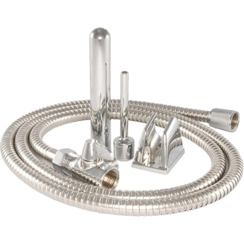 Si Novelties Deluxe Shower Bidet:?allows you to cleanse yourself in the easiest spot in the house, your shower. The stainless steel materials also allows you to keep this bidet / enema system installed full-time, so it will be ready whenever you want. Installing this shower system is fairly easy. If you can install a shower head, you can install this system. Remove your existing shower head Install the included valve and hose Reinstall your shower head. That’s it! Soon you will be able to enjoy an enema or flush any time you wish. You can use this shower system to cleanse and refresh before more intimate moments, or just on a regular basis. The 2-way valve is designed so that you can use your shower, bidet, or both at the same time. This shower system is made from great materials. The hose is stainless steel, the fittings are made of heavy nickel plated brass, and everything you need is included in the kit. This set comes with 2 different sized nozzles. One is 0.8 x 5, and the other 0.3 x 3.5. This type of system is sometimes called a Shower Shot, but this particular one is called Jim Diamond’s Shower Bidet/Enema System.