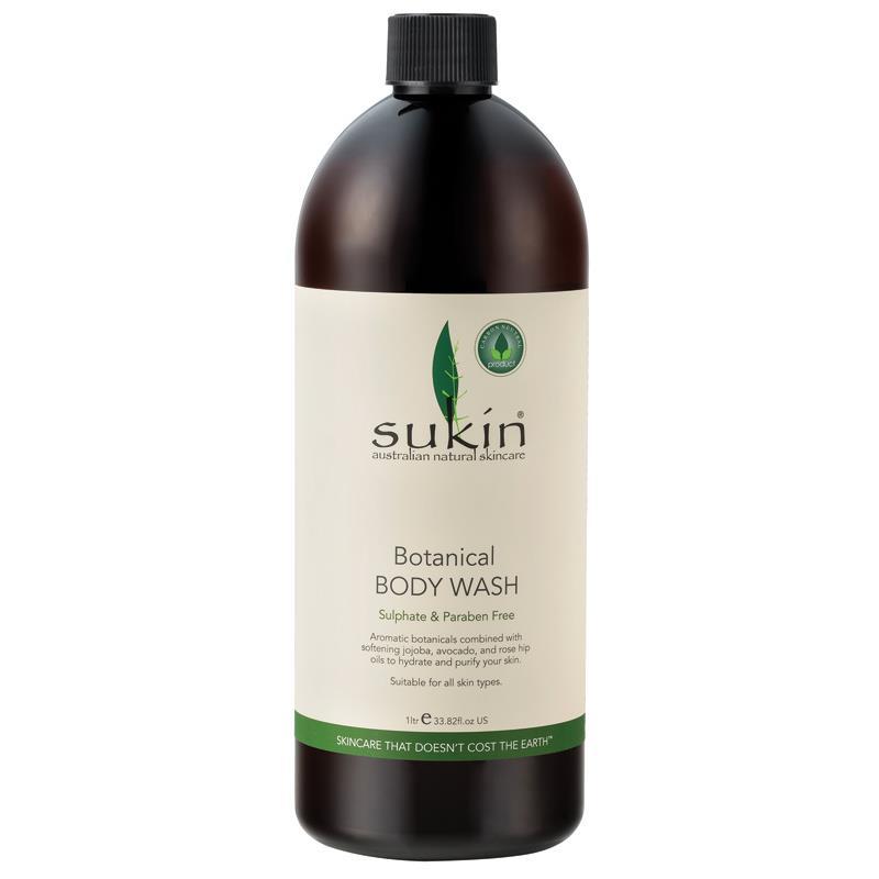 Sukin Botanical Body Wash Refill Cap 1L is a nourishing combination of Rosehip, Jojoba and Avocado Oils purify and lightly hydrate while Chamomile and Aloe Vera soothes skin. Ingredients: Water (Aqua), Aloe Barbadensis Leaf Juice, Cocamidopropyl Betaine, Decyl Glucoside, PEG-150 Pentaerythrityl Tetrastearate, Glycerin, Rosa Canina Fruit Oil (Rosehip), Simmondsia Chinensis (Jojoba) Seed Oil, Persea Gratissima (Avocado) Oil, Tocopherol (Vitamin E), Chamomilla Recutita (Matricaria) Flower Extract (Chamomile), Yucca Schidigera Root Extract, Lavandula Angustifolia (Lavender) Flower Extract, Citrus Tangerina (Tangerine) Peel Oil, Citrus Nobilis (Mandarin Orange) Peel Oil, Lavandula Angustifolia (Lavender) Oil, Vanillin, Vanilla Planifolia Fruit Extract, Phenoxyethanol, Benzyl Alcohol, Limonene*, Linalool*. Directions: APPLICATION: Use a small amount on a sponge in the shower or bath. Lather and rinse thoroughly. Warnings & Disclaimers: Avoid contact with eyes. If irritation occurs rinse immediately and discontinue use. For external use only. Individual results may vary.