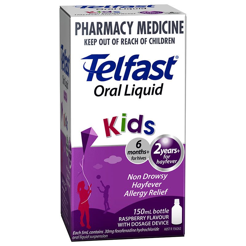 Use Telfast Children’s Elixir for: Relief of the symptoms of hayfever allergies: Sneezing Runny & Itchy Nose Itchy & Watery Eyes Itchy Throat Relief of the symptoms of itchy skin rash/hives (urticaria): Swelling related to allergy or hives Itchy skin rash Itch caused by hives
