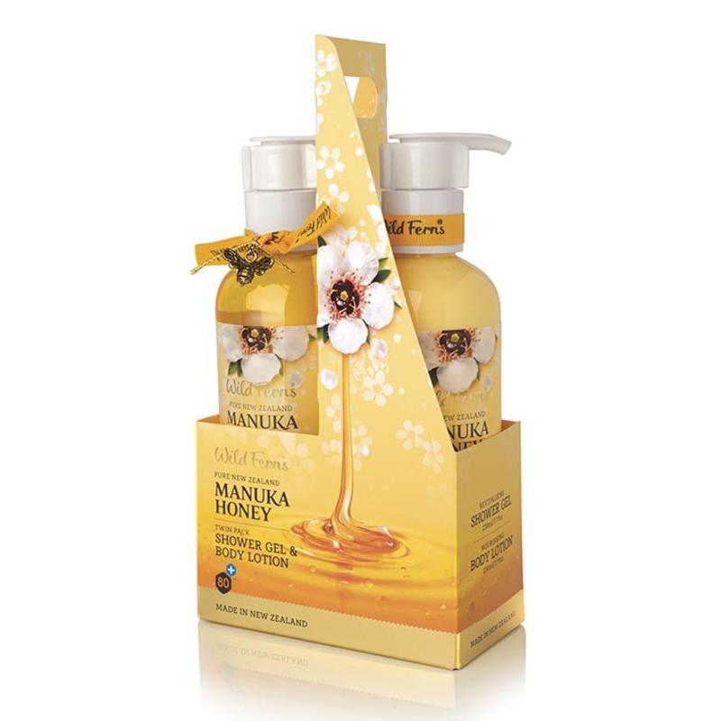 Wild Ferns 麦卢卡蜂蜜沐浴护肤套装包含:Wild Ferns 麦卢卡蜂蜜沐浴露 230ml、Wild Ferns 麦卢卡蜂蜜润肤乳 230ml。