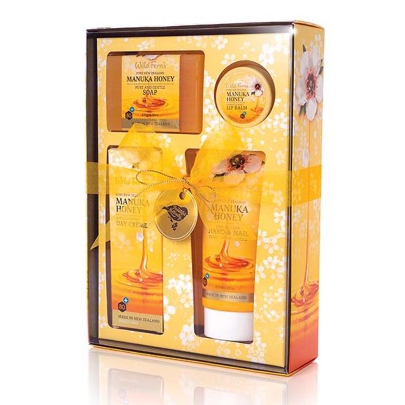 Hand & Nail Creme 85ml Filled with over 10 skin loving natural ingredients this quick absorbing hand crème will leave you with conditioned cuticles and silky smooth hands.Contains premium certified Manuka Honey 80+ blended with Prosina, a hydrolysed keratin derived from New Zealand sheep’s wool. This proven combination improves the structure and strength of your nails. It also improves the hydration and elasticity of your skin and cuticles. Shea Butter combined with the oils of Sweet Almond, Olive, Hazelnut and Orange Peel will deeply nourish, restoring elasticity and smoothness. Added Chamomile and Passionflower helps to calm, soothe and heal tired hands. Directions Apply as often as required on and around nails, cuticles and hands. Perfect for during the day. Other beneficial ingredients Mango Seed Butter and Green Tea Soap 135g A luxurious triple milled soap to ensure a long lasting lather blended with antibacterial premium certified Manuka Honey 80+. Soothes, moisturises and heals, leaving your skin soft and refreshed. The beautiful fragrance will leave you wanting more. Directions May be used on hands or body but not recommended for your face. Lather from top to toe and rinse. Lip Balm 15g One of our most popular products, this ultraconditioning lip balm will help to seal in moisture and condition dry cracked lips. Enhanced with premium certified Manuka Honey 80+ and blended with Vitamin E, Shea Butter, Sunflower Seed Oil and Bees Wax, these ingredients all work together to protect, hydrate and soften your lips. Wild Ferns lip care products contain natural Bees Wax which is exceptionally moisturising. This lip balm is lovely used at night to moisturise and heal your lips while you sleep. Directions Apply to your lips as needed. Other beneficial ingredients Sweet Almond Oil, Meadowfoam Oil Day Creme 100ml A beautiful crème containing premium certified Manuka Honey 80+ for daily hydration and nourishment. A potent blend of essential fatty acid rich oils of Evening Primrose, Avocado, Olive and Raspberry Seed provide instant hydration and softness, while Chamomile helps calm and soothe irritated skin for a healthier, more radiant complexion. Fantastic option for those not wanting sunscreen included in their moisturiser. Suitable for all skin types, especially dry and mature. Directions After cleansing apply a small amount of crème and gently smooth in an upward direction onto the face and neck. Other beneficial ingredients Vitamin E, Bee Pollen